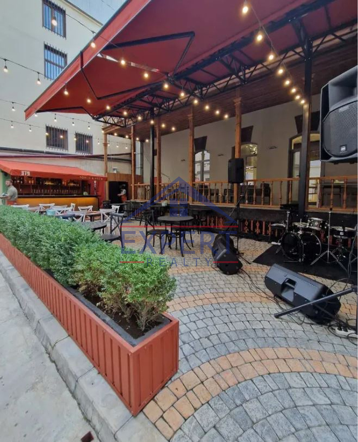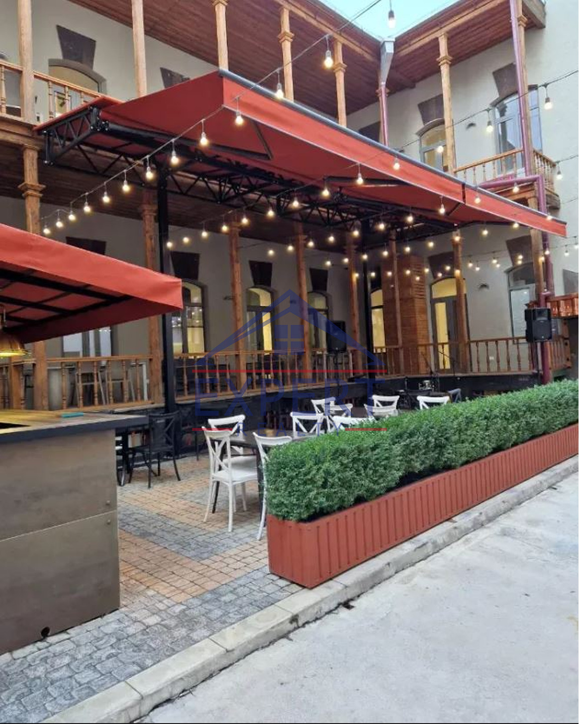 Դրսի տարածքը նույնպես տեղավորում է մոտ 120 հյուր, ունի պրոֆեսիոնալ ծածկ՝ արևից և անձրևից պաշտպանելու համար, բառ, կահույք, տեխնիկա, պրոֆեսիոնալ երաշտական համակարգ։