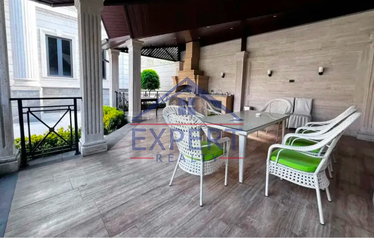Առանձնատան հատուկ առավելություններն են՝ տաքացվող մարմարե հատակները, մարմարե աստիճանները, ժամանակակից գազի կաթսան և ֆանկոլային համակարգը: Բակը հատուկ դիզայներական լուծումներով է՝ սիզամարգով, դեկորատիվ ծառերով և բուխարիով հագեցած ամառային զրուցարանով: Շենքի արտաքին երեսպատումը և պարիսպները պատված են գեղեցիկ սպիտակ տրավերտինով: