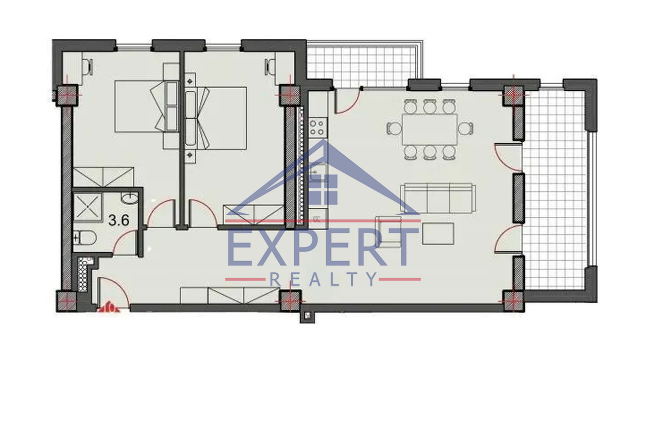 Ունի 2 մեծ, գեղեցիկ բաց պատշգամբներ։