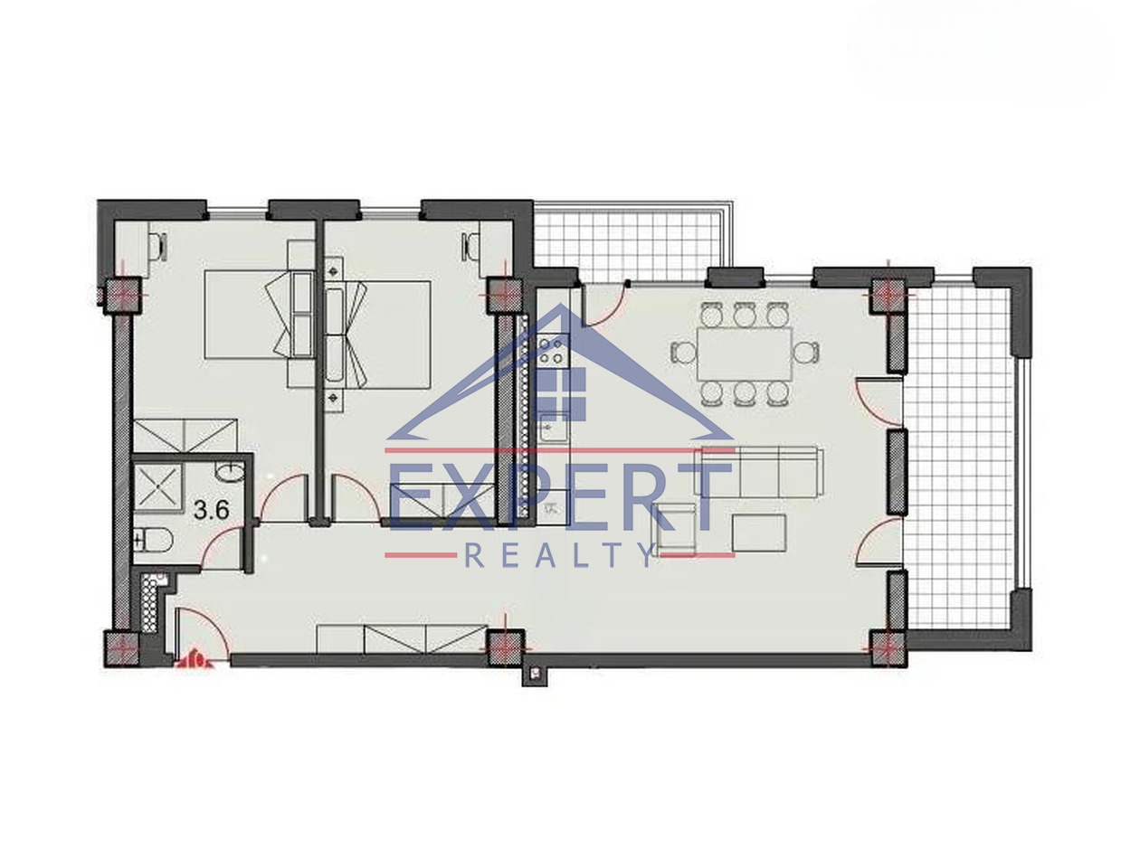 Ունի 2 մեծ, գեղեցիկ բաց պատշգամբներ։