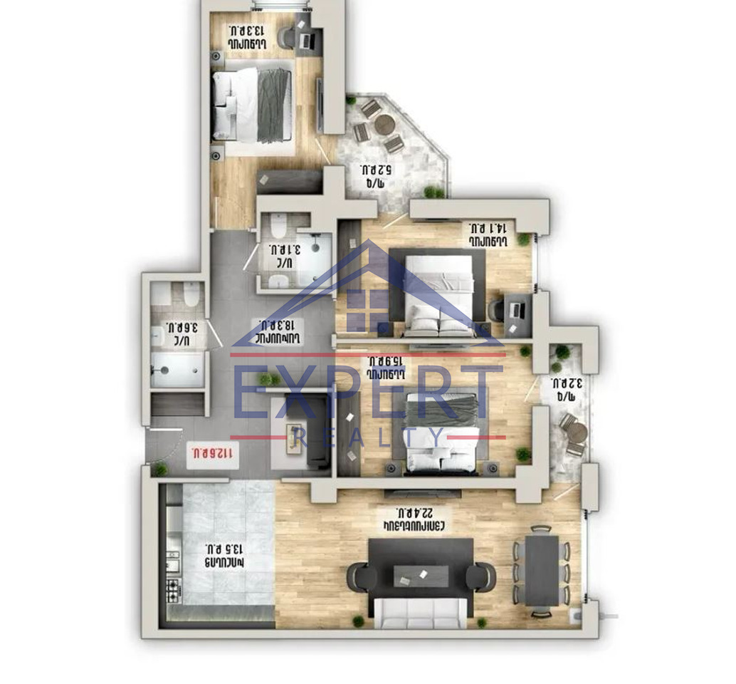 Ռուբինյանց փողոցում կենտրոնում, 112 քմ, 3/16 հարկ 4 սենյականոց բնակարան նորակառույց շենքում